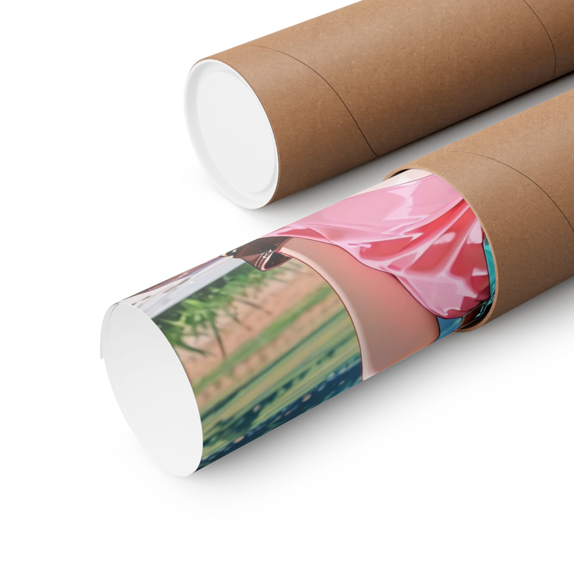 This matte vertical poster captures a sunlit, adventurous moment with vivid, giclée color and museum-grade archival paper that keeps the print bright for years. The artwork shows a confident, playful character in a breezy pink outfit against a wide mountain valley and blue sky. Hung in a bedroom, studio, or creative workspace, the poster brings a sense of summer exploration and energetic charm to the room. The matte finish reduces glare and highlights the illustration’s painterly detail while the heavyweight archival stock keeps edges crisp and colors true.